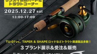 TRY-ANGLE/五十鈴工業/TAPER & SHAPEブースで販売する商品のお品書きです!特価B品、リールの実機販売をはじめTAPER & SHAPEのトラウト用ロッドを全品展示販売します。ハンドクラフトエキシビションオリジナルグッズも...