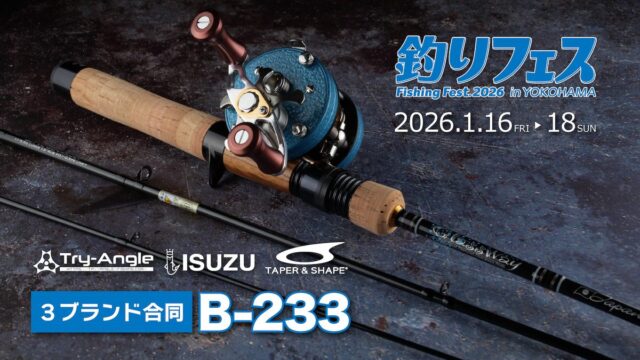 2026年1月16日(金)-18日(日)パシフィコ横浜で開催の釣りフェス2026にTRY-ANGLE、五十鈴工業、TAPER & SHAPEの3ブランド合同ブースで出展します。ロッド、リールなど新製品を中心に実機多数展示予定!ぜひブースでお...